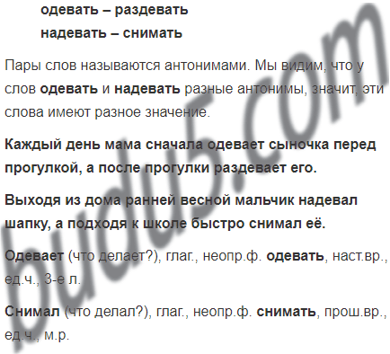 Как с помощью антонимов к глаголам одевать и надевать можно доказать, что у этих глаголов разное значение? Выпиши из предложений два любых глагола и разбери их как часть речи.