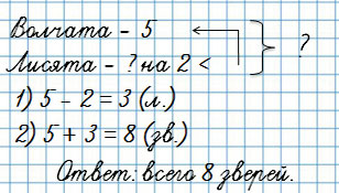 14. На площадке молодняка играли 5 волчат, а лисят на 2 меньше.