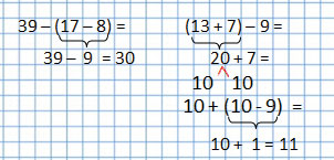 3) Из числа 39 вычесть разность чисел 17 и 8.