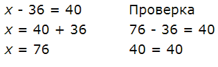 Для проверки решения нужно подставить 76 в уравнение вместо неизвестного уменьшаемого.