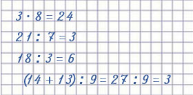 | 5 • 3 = 15 | 24 : 8 = 3 | 12 : 3 = 4 | 27 : 9 = 3 |
