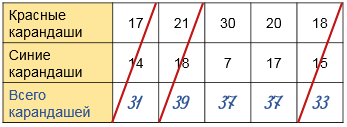 Есть 2 варианта, когда сумма красных и синих карандашей равна 37, но вариант 30 + 7 нам не подходит, потому что по условию задачи красных карандашей было на 3 больше, чем синих, а 30 > 7 на 23.