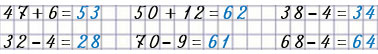 | 47 + 6 = 47 + 3 + 3 = 50 + 3 = 53 | 50 + 12 = 50 + 10 + 2 = 60 + 2 = 62 |