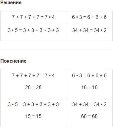 | 34 + 34 = 34 • 2 - по 34 взяли 2 раза |