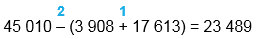 | 45 010 - (3 908 + 17 613) = 23 489 | |