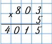 Умножаю единицы: 5 • 3 = 15. 15 ед. - это 1 дес. и 5 ед., 5 ед. пишу под единицами, а 1 дес. запомню и прибавлю к десяткам после умножения десятков.