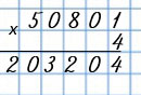 Пишу (единицы под единицами, десятки под десятками, сотни под сотнями, единицы тысяч под единицами тысяч, десятки тысяч под десятками тысяч): 50801 • 4.