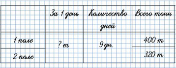 347. Комбайнер убирал 9 дней пшеницу на двух полях. На первом поле он собрал 400 т пшеницы, а на втором - 320 т. Сколько тонн зерна убирал комбайнер за 1 день, если ежедневная выработка была одинаковой?
