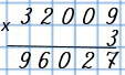 Пишу (единицы под единицами, десятки под десятками, сотни под сотнями, единицы тысяч под единицами тысяч, десятки тысяч под десятками тысяч): 32 009 • 3.
