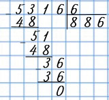 Вычту 48 из 53, получу 5 - столько сотен осталось разделить.