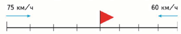 43. Из двух городов вышли навстречу друг другу два поезда. Один из них шёл до встречи 4 ч со скоростью 75 км/ч, а другой - 4 ч со скоростью 60 км/ч. Рассмотри чертёж и объясни, что показывают выражения.
