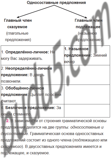 2. Расскажите об односоставных предложениях по плану: