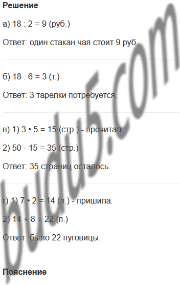 а) За два стакана чая заплатили 18 руб. Сколько стоит один стакан чая?