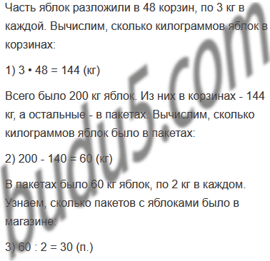 Задание № 3. В магазин привезли 200 кг яблок. Часть яблок разложили в 48 корзин по 3 кг в каждой, а остальные яблоки - в пакеты по 2 кг в каждом. Сколько было пакетов по 2 кг яблок?