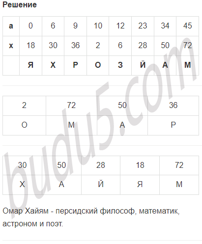 Задание № 11. Выполни действия и заполни таблицу в тетради. Расшифруй имя среднеазиатского математика и поэта, предложившего одну из самых интересных систем календарей. Найди информацию о нём.