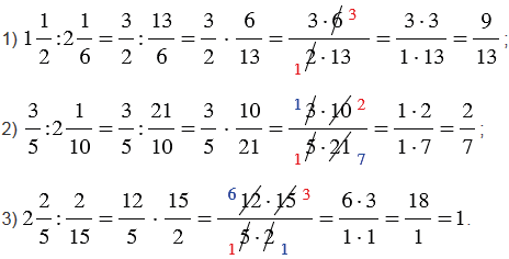 Обратите внимание, если возможно, то прежде, чем перемножить числа, выполняем сокращение (такой ход действий облегчит вычисления).